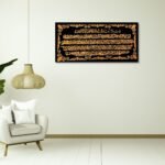 The artwork showcases intricately designed calligraphy of meaningful Quranic verses, offering comfort and a reminder of Allah’s presence. These selected verses touch on themes of mercy, gratitude, hope, and patience. Additionally, the art may include duas (supplications) recited daily for protection, guidance, and blessings, helping to create an atmosphere of serenity and spiritual connection.